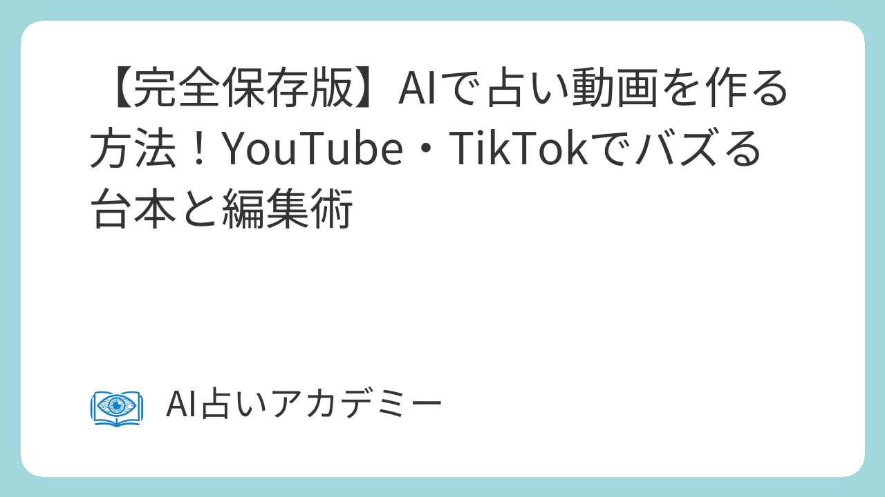 「あなたの今週の運勢は?」「あの人の気持ちは?」SNSを開けば必ず流れてくる、魅力的な占い動画たち。それらを見るたびに、「自分ならもっと面白いリーディングができるのに」「私の世界観を表現してみたい」というクリエイティブな欲求が湧いてくることはありませんか?